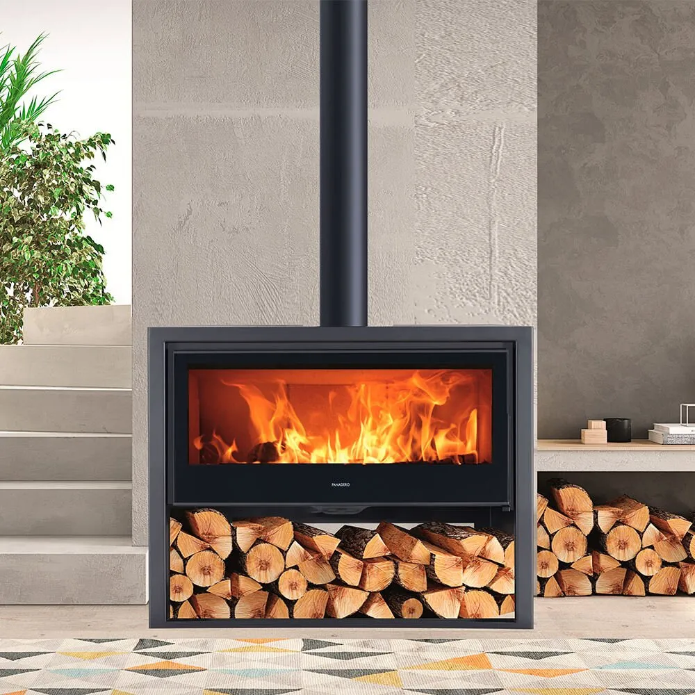 Poêle à bois de style moderne-contemporain et conforme aux normes Ecodesign. Son design est idéal pour les grandes pièces (873x1091x468mm). Il a un volume de chauffage de 270 m3 et une puissance calorifique de 8,9 kW. Il offre la possibilité de stocker des bûches jusqu’à 80 cm dans son rangement pour bûches de bois, ce qui ajoute de la fonctionnalité avec une touche d’élégance. Il dispose d’une prise d’air extérieur. Son intérieur est doublé de vermiculite, ce qui permet une plus grande puissance.
