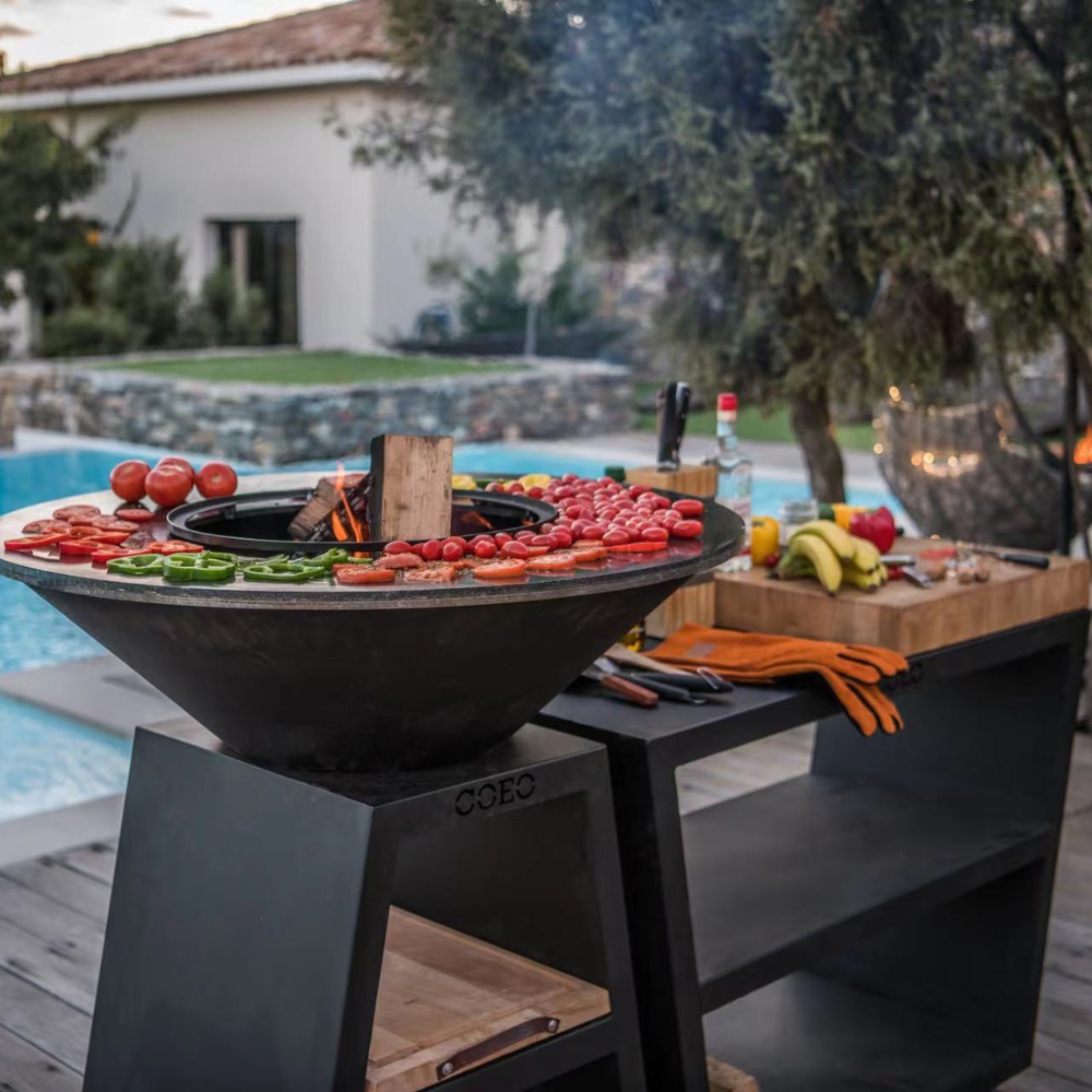 Utilisé en tant que brasero, il permet de réchauffer atmosphère et apporte chaleur et convivialité à tous les styles d’extérieur. Sa plancha circulaire permet de cuisiner directement des viandes, poissons, légumes ou encore de faire mijoter des plats dans des cocottes en fonte.