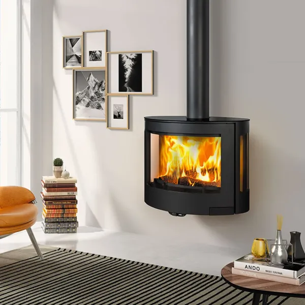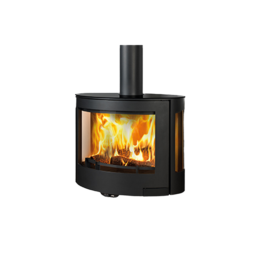 Ce poêle à bois est doté d’un large foyer à trois faces vitrées, permettant de mettre des bûches de 60cm.