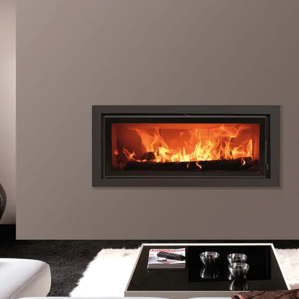 Poêle à bois moderne et conforme à Ecodesing. Son design est idéal pour les grandes pièces 627x1120x470 mm. Il a un volume de chauffe de 270 m3 et une puissance calorifique de 8,9 kW. Capacité pour les bûches jusqu’à 80 cm, ce qui ajoute à la fonctionnalité. Porte en verre sérigraphié et grille en fonte. Système de verre propre et vue panoramique, permettant une vue maximale du feu. Le foyer est recouvert de vermiculite, ce qui accroît la puissance. Il dispose d’une prise d’air externe et d’une triple combustion.